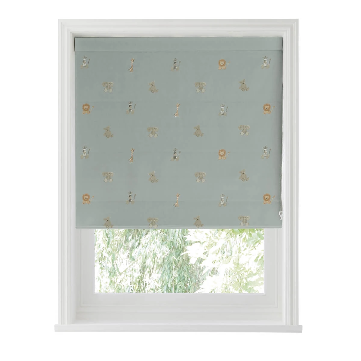 Excellent for blocking the light when they go down for a daytime nap or evening snooze. Perfect for children’s rooms or nurseries, this adorable roman blind features Sophie’s Bears & Balloons design, which is covered in safari animals with cute giraffes, lions, zebras and teddy bears on a sage green ground.