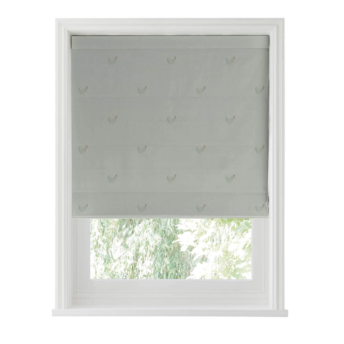 A charming addition to any country home, this made to measure roman blind is sure to brighten up any window. It is dotted with Speckled Maran Hens on a beautiful sage grey coloured background, perfect for those who love chickens or keeps their own hens.