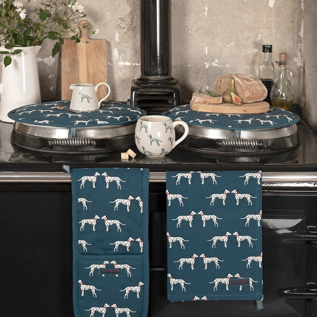 Pretty and practical, these double oven gloves feature Sophie’s striking Dalmatian design on a beautiful navy teal background. Perfect for adding a stylish touch to your kitchen. A wonderful gift idea for someone who loves Dalmatians.