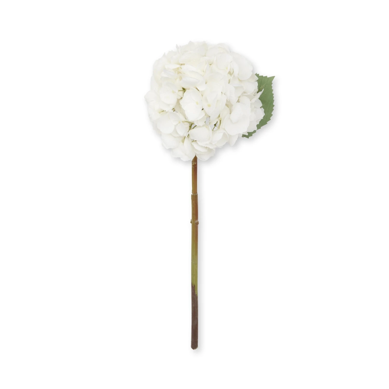 This artificial white hydrangea is one of our best-selling artificial flowers. The clean, crisp colour of the large blooms on this perfect faux white hydrangea add a freshness to any décor, the petals are a subtle off-white colour while the large bloom can be positioned to drop naturally over the side of the vase.