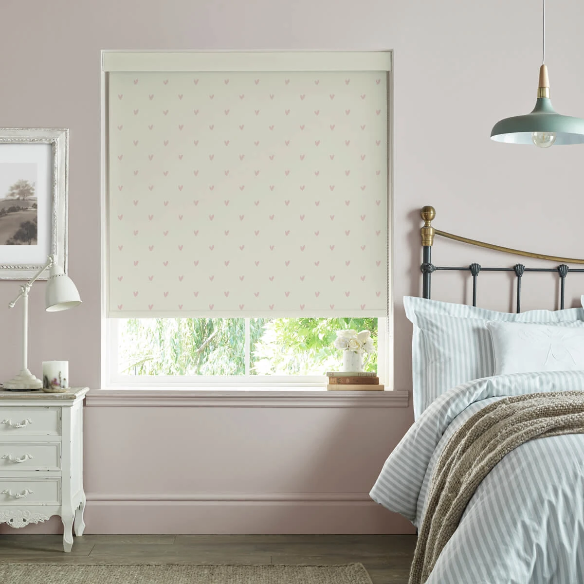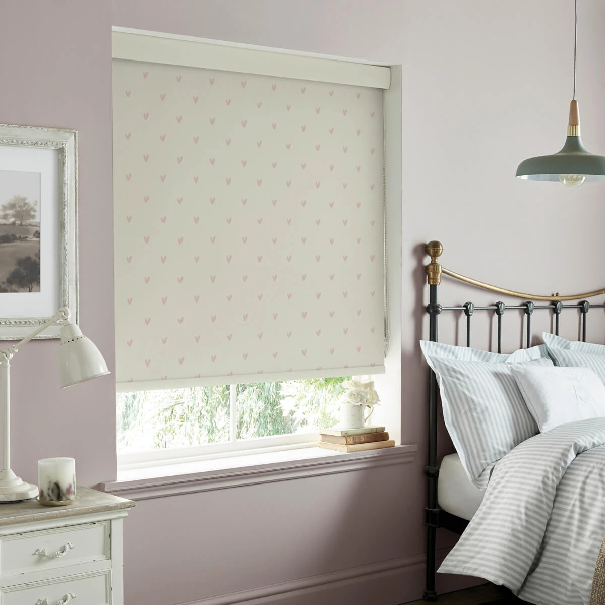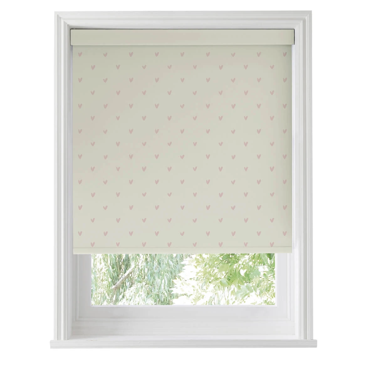 Spread some love to your home with these beautiful made to measure roller blinds. Excellent for adding a stylish touch these roller blinds are dotted with blush coloured hearts on a neutral coloured background. Excellent for any room in your home, including living rooms, bedrooms, hallways, dining rooms, kitchens and bathrooms.