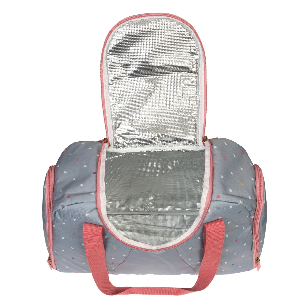 Pack up a romantic picnic for two and head to the beach or park with this beautiful picnic bag covered in multicoloured hearts on a slate grey background. The thick insulation is perfect for keeping your food and drink fresh and cool, and there are also two insulated side pockets, excellent for storing a bottle of something special.