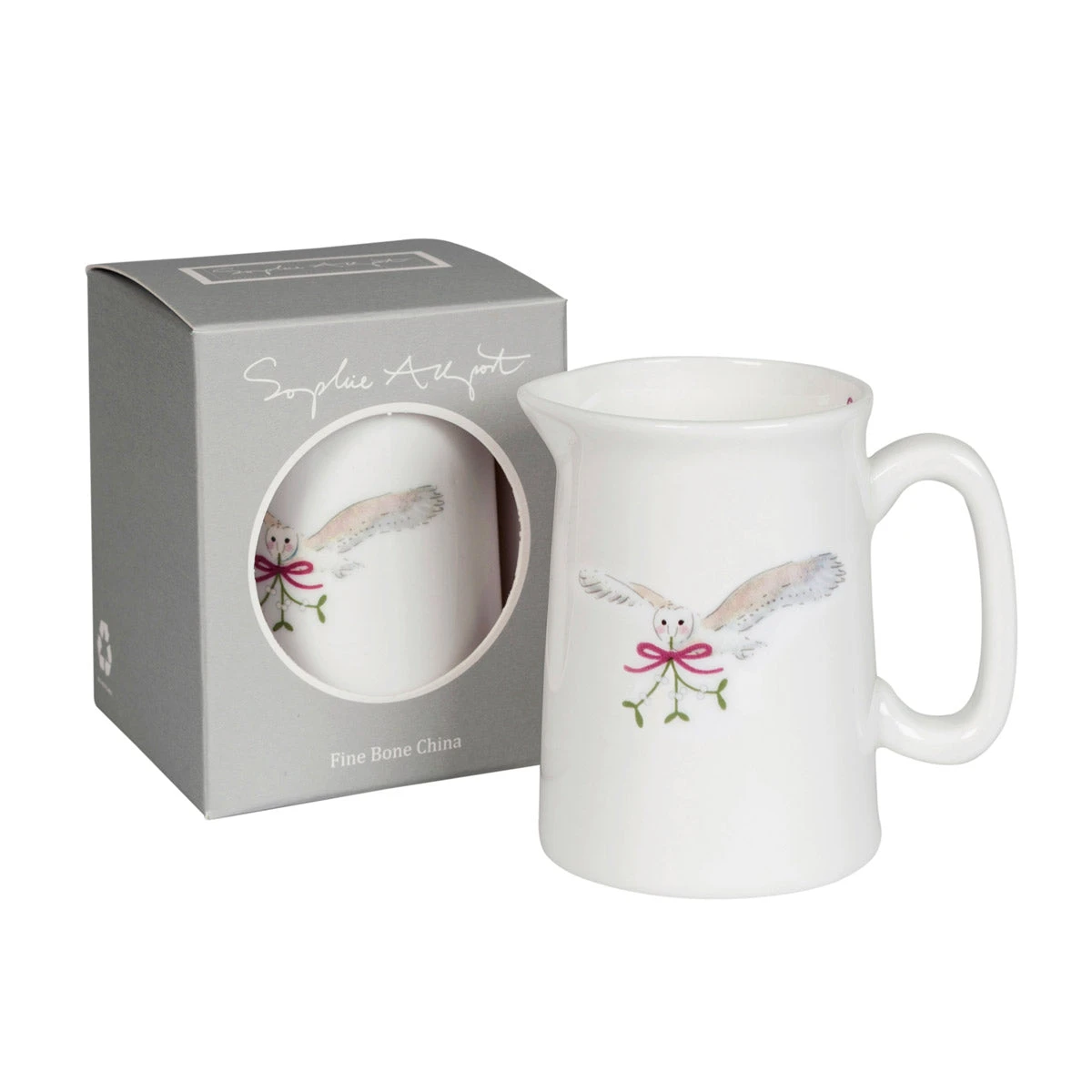 Featuring a graceful Barn Owl carrying a sprig of mistletoe, this festive china jug would make a lovely Christmas gift.
