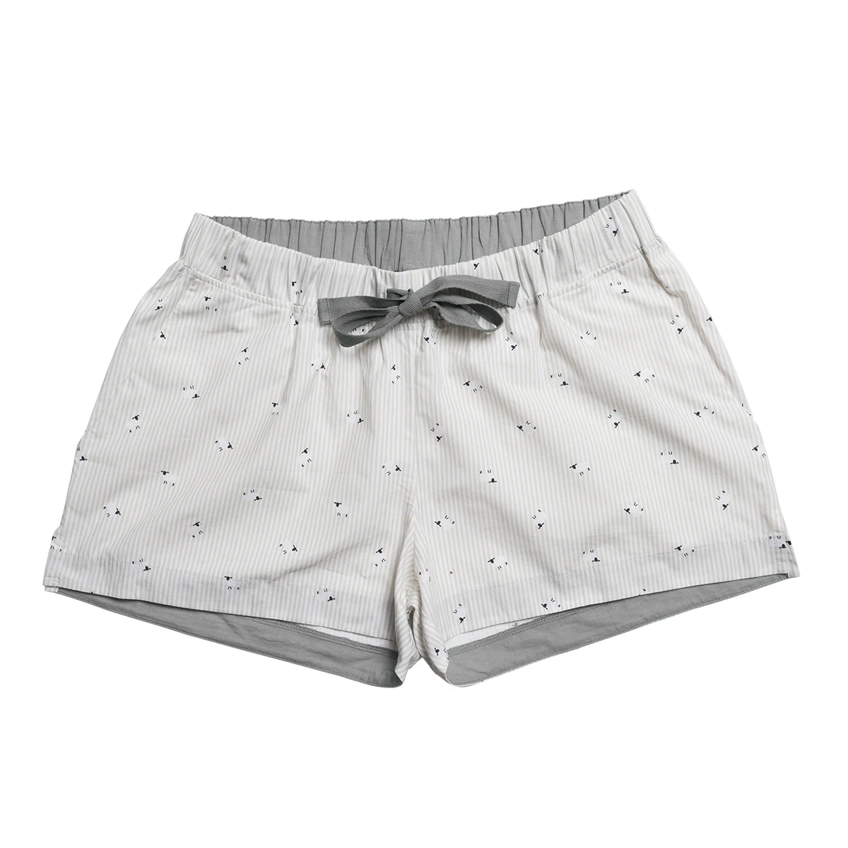 These lovely pyjama shorts are perfect for the summer evenings and are made from a lightweight cotton, making an excellent choice to keep you comfy and cool. There are practical pockets and a handy tie waist, while Sophie’s sheep design sits on a lovely stone coloured striped background with a darker grey tie, cuff and inner waist. Perfect for bed or lounging around the house.