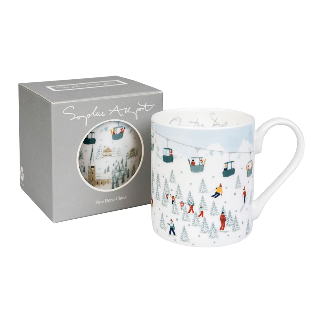 This brilliant Skiing mug is the next best thing to a cup of tea up the mountain! Colourful skiers and snowboarders dodge the snow-capped fir trees, with a gondola lift above. A great gift for any snow-sport fan!