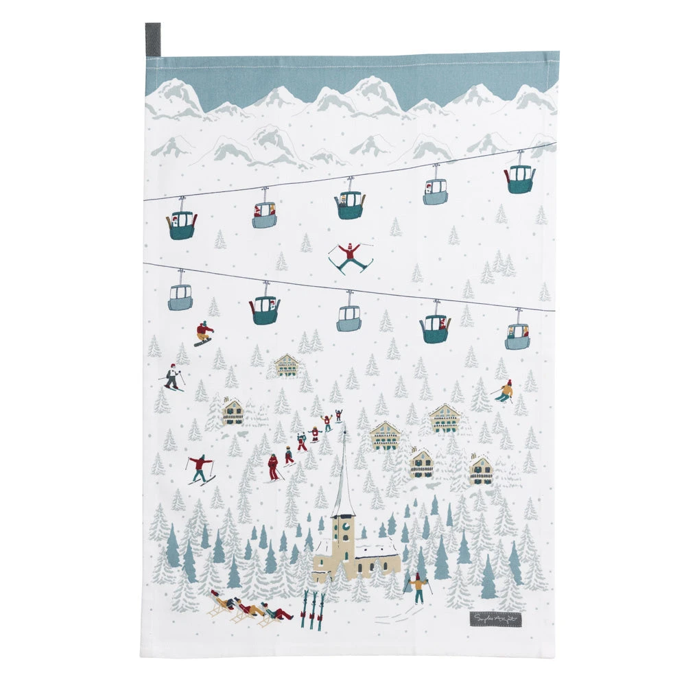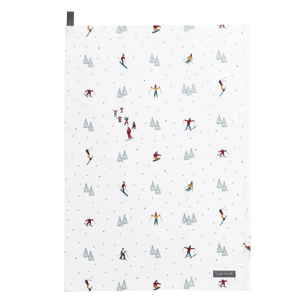 This set of 2 tea towels brings Alpine charm to your kitchen. One towel features a blissful mountain scene with skiers and snowboarders dodging snow-capped fir trees, while the other shows colourful skiers dotted along a snowy mountain. There is a handy ‘loop’ in the top left corner of each tea towel, so you can hang them up in your kitchen.
