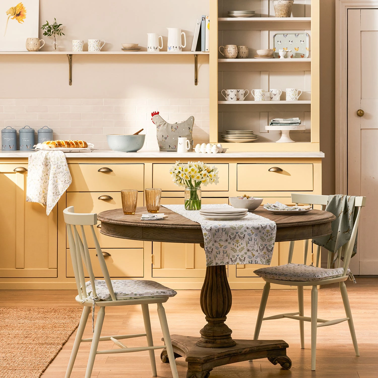 This table runner brings a fresh spring look to your kitchen with its fun Spring Chicken print, featuring Sophie’s playful farmyard motif on a crisp white background. Perfect for family breakfasts, a leisurely lunch or everyday meals as well as entertaining and celebrations for all occasions. Create a co-ordinated look with other items from the collection or simply refresh your current style.