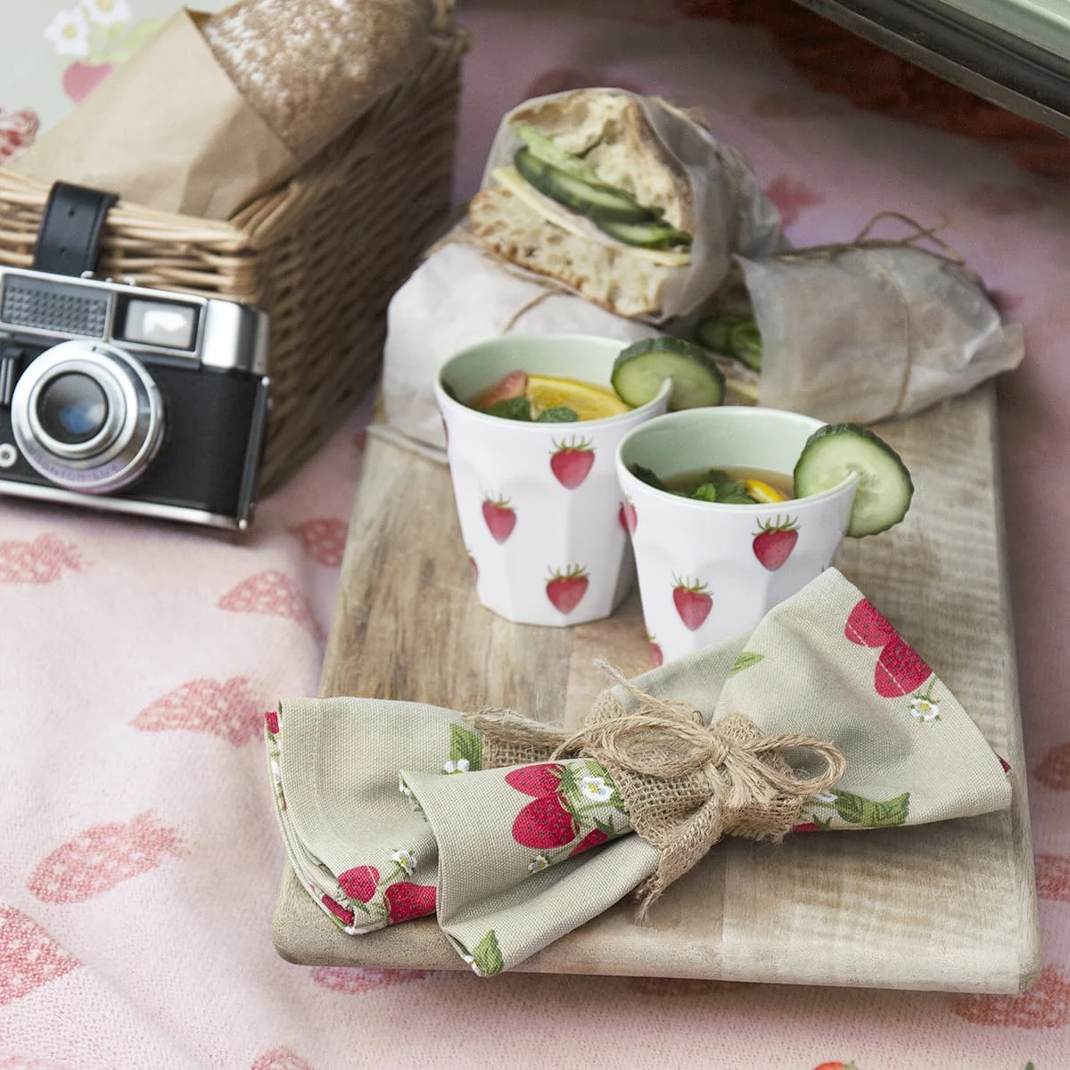 A super sweet summer essential, this lovely melamine beaker is perfect for picnics in the park, beach trips, BBQs and outdoor entertaining. Featuring juicy solo red strawberries on a white background, match with the Strawberries melamine bowl and plates for the complete ‘berry’ stylish collection.