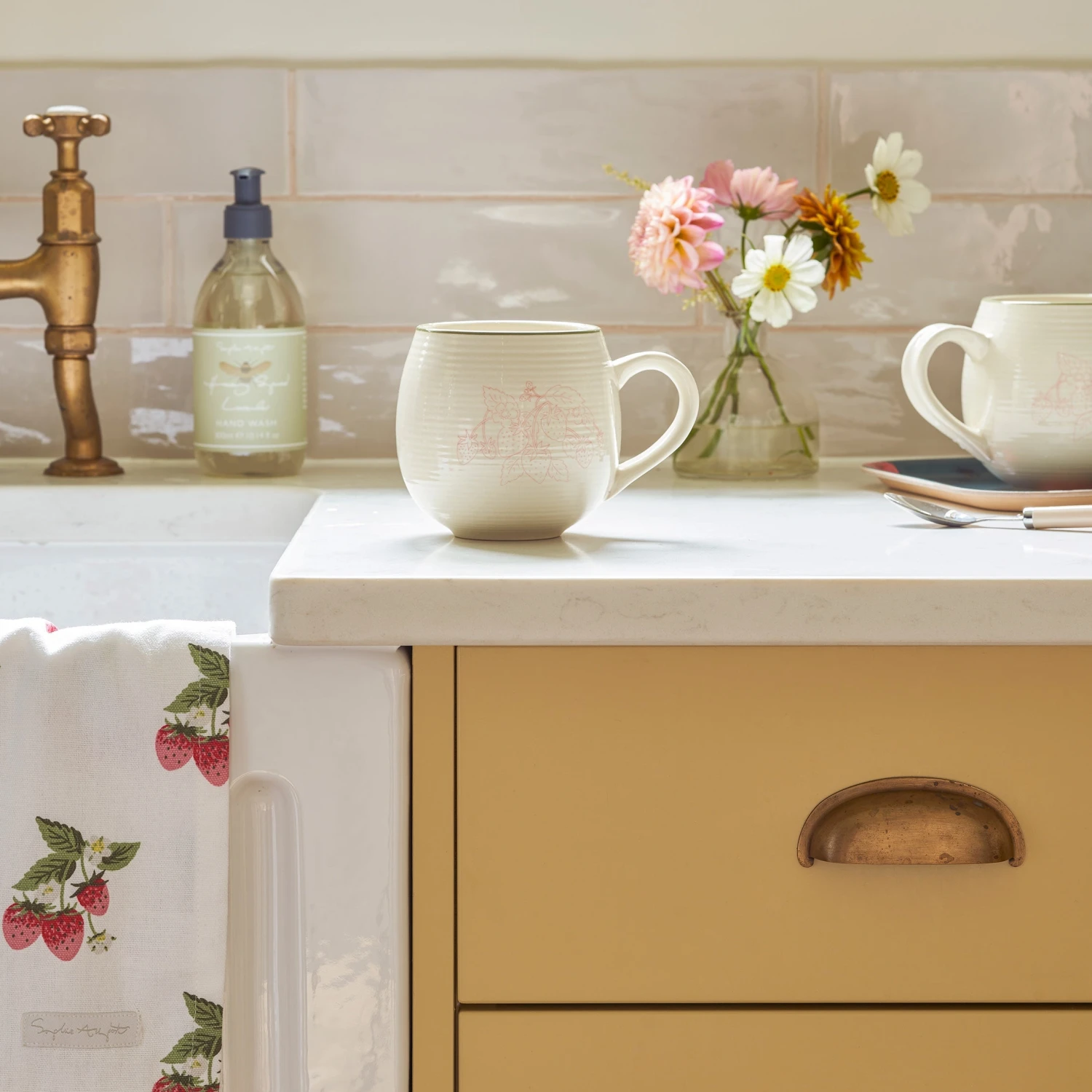 Sit down with a cuppa and enjoy the start of the new season with this curvaceous stoneware mug, which sits comfortably in the hand and features Sophie’s hand drawn Strawberries print. Mix and match with our other spring and summer collections or buy a few for a co-ordinated look.