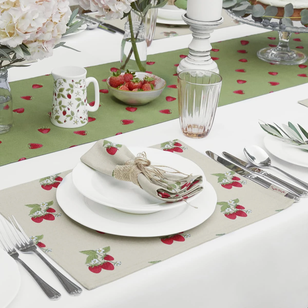 Add a fruity twist to your tablescaping this year with this vibrant table runner which will certainly add a touch of sweetness to any occasion. Featuring juicy solo strawberries on a punchy olive background, it pairs perfectly with the matching Strawberries fabric placemats and napkins for a ‘berry’ stylish table setting.
