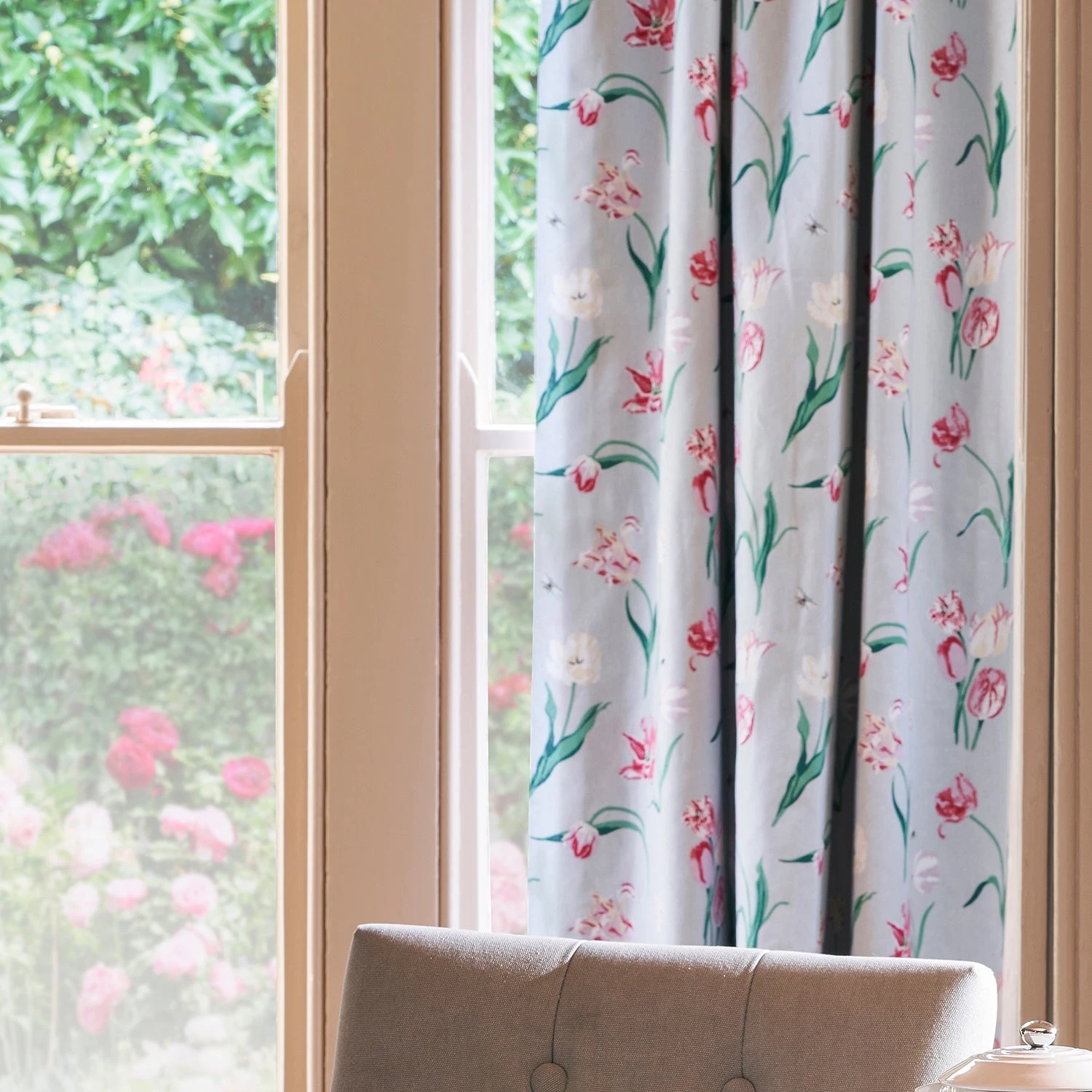 Our hand drawn Tulips fabric features Sophie’s free flowing parrot tulip design and is made from 100% cotton. This elegant and natural print is perfect for bringing the outdoors in and can be used for blinds, curtains and cushion making. Ideal for a complete room revamp or adding to existing décor.