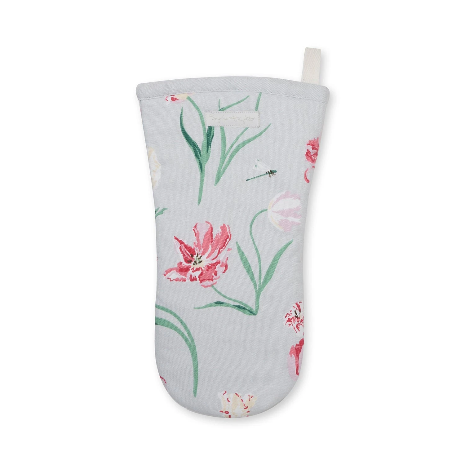 This elegant oven mitt features Sophie’s hand drawn free flowing tulips on a soft grey background. Perfect for giving your kitchen a seasonal update while helping to protect your hands as you move hot baking trays and cookware from the oven around the kitchen. Team with other textiles in this collection for a matching look.