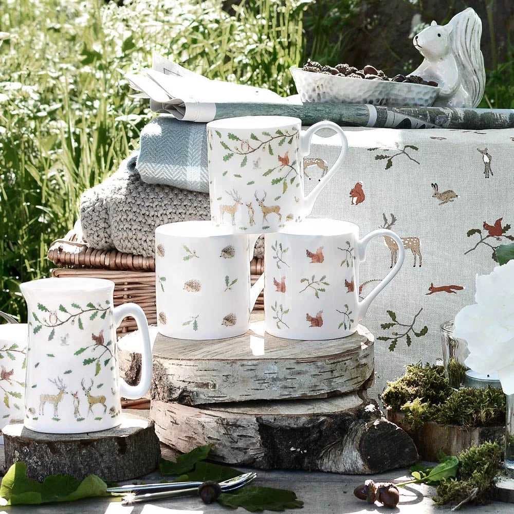 This gorgeous fine bone china jug celebrates animals of the Woodland – a family of deer are watched over by owls and a red squirrel perching in an oak tree, whilst other animals play amongst the fallen leaves. It is presented in a smart gift box – making a lovely gift which is easy to wrap!